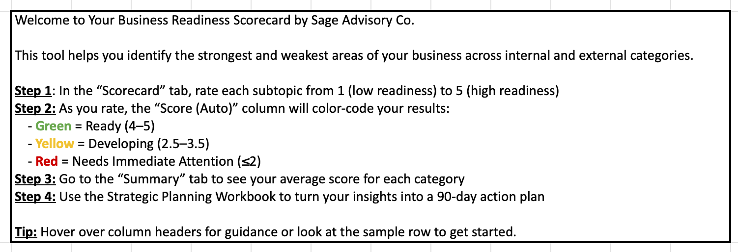 DIY Business Readiness Workbook & Scorecard - Digital Download
