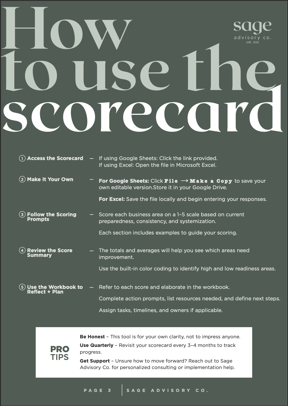 Walk-through for setup, scoring, and quarterly check-ins. No fluff, just actionable clarity.